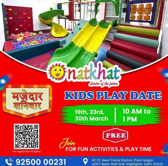 Summary: Join the Natkhat Play School for a fun-filled playdate where kids can engage in creative activities and enjoy playtime.