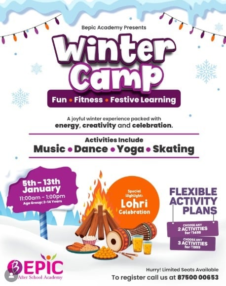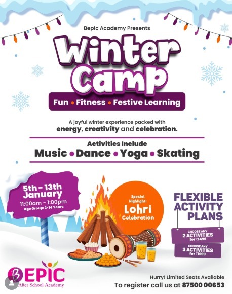 Join Bepic Academy for our Winter Camp, Fun, Fitness, Festive Learning! Designed for children aged 2 to 14 years, this camp offers a variety of exciting activities including music, dance, yoga, and skating.