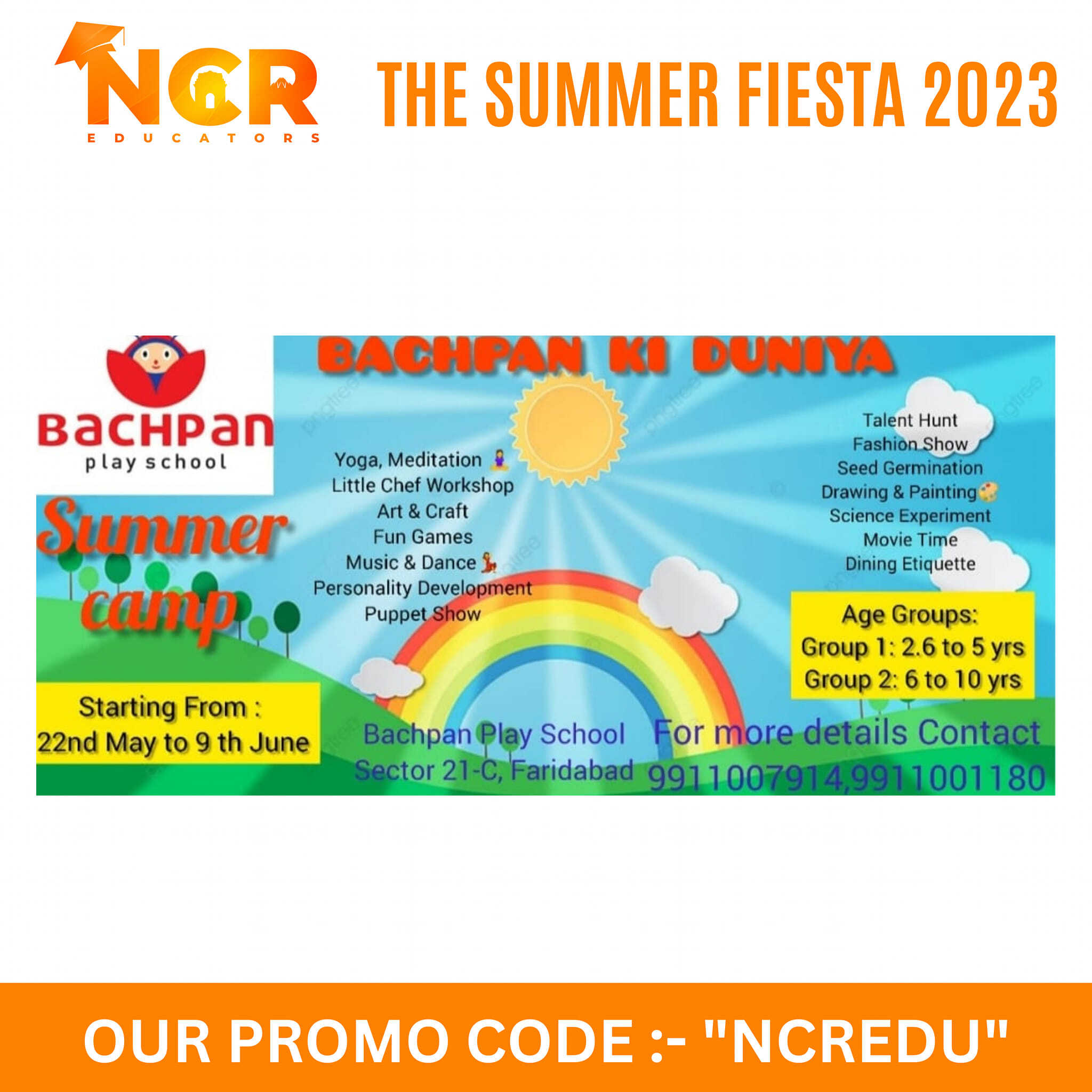 NCR Educator N Bachpan Play School Hosted Summer Camp For Kids Enroll Your Child Highlights: đ§ Yoga đ§ââď¸ Meditation đŠâđł Little Chef Workshop đ¨ Art & Craft đ˛ Fun Games đś Music And Dance đ Personality Development đ Puppet Show đ Talent Hunt đ Fashion Show đą Seed Germination đď¸ Drawing & Painting đŹ Science Experiment đŹ Movie Time đ˝ď¸ Dining Etiquette