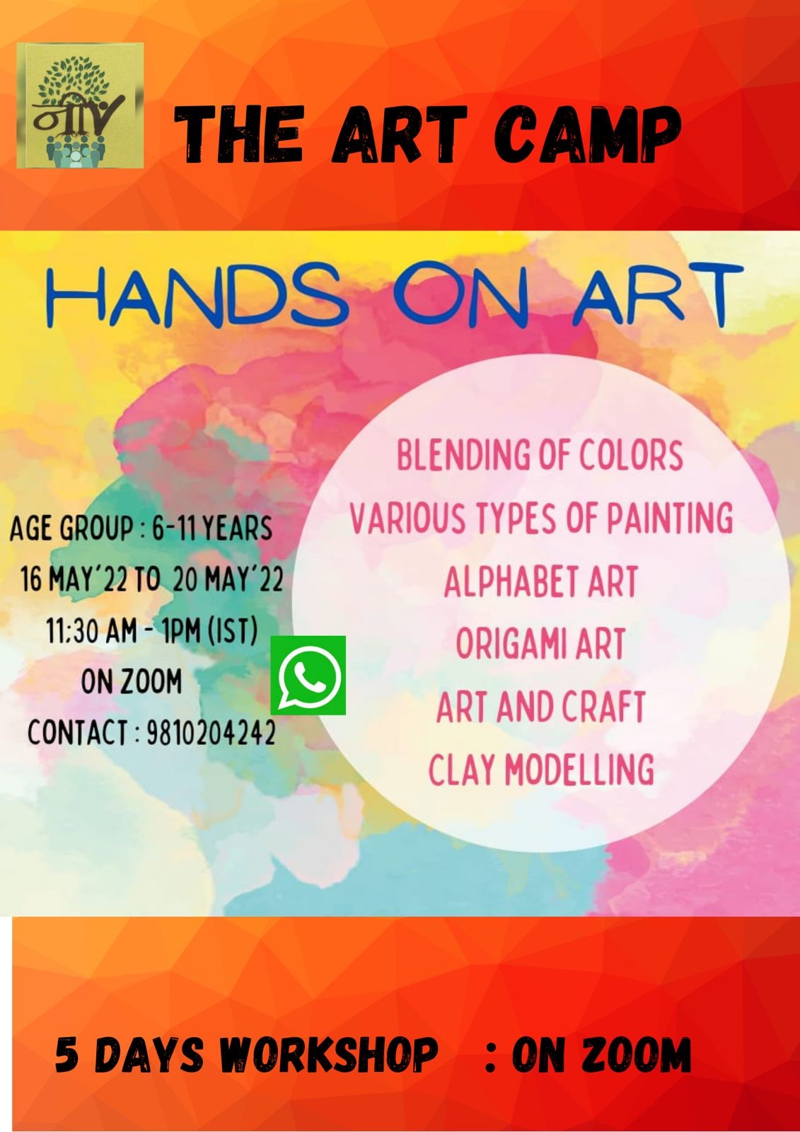 Message: đ Transform summer into a season of creativity! Enroll your child in our Neev Art Camp today and watch their imagination flourish! đâ¨
