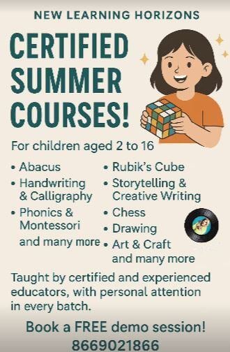 Unlock your child’s potential this summer with our engaging and skill-building certified courses! Taught by experienced educators, each batch is designed to provide personal attention and fun-filled learning.