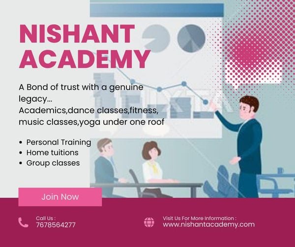 Summary: đ Build a trusted relationship and improve your skills at Nishant Academy with a variety of classes ranging from academics to fitness, all under one roof! đ Offering personal training, home tuitions, and group classes to cater to every learning style.