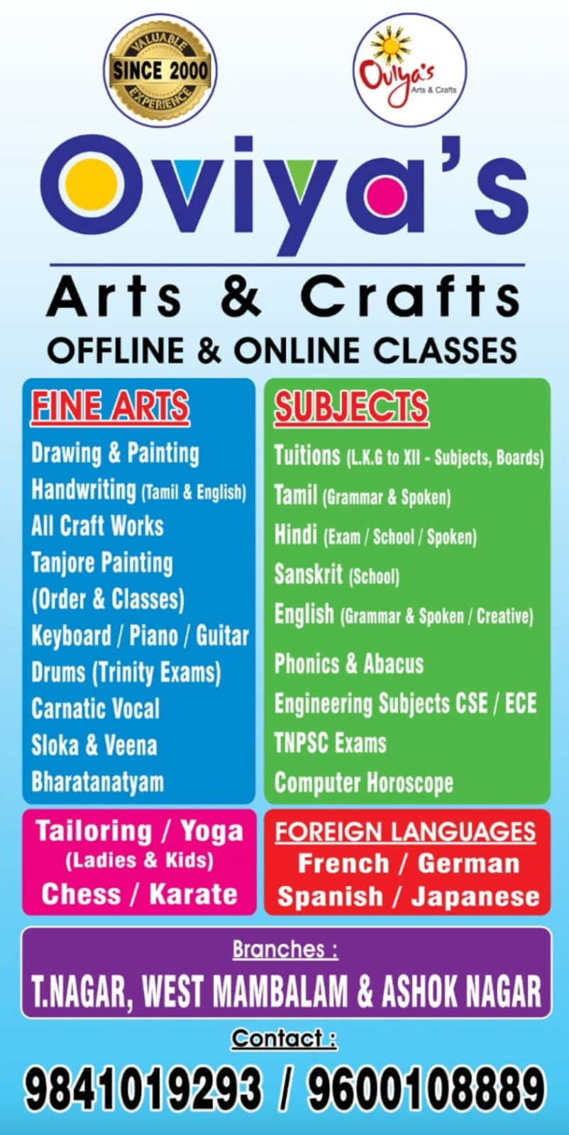 Summary: Explore a variety of artistic disciplines from drawing and painting to crafts and languages at Oviyas Arts & Crafts online classes, tailored for children.