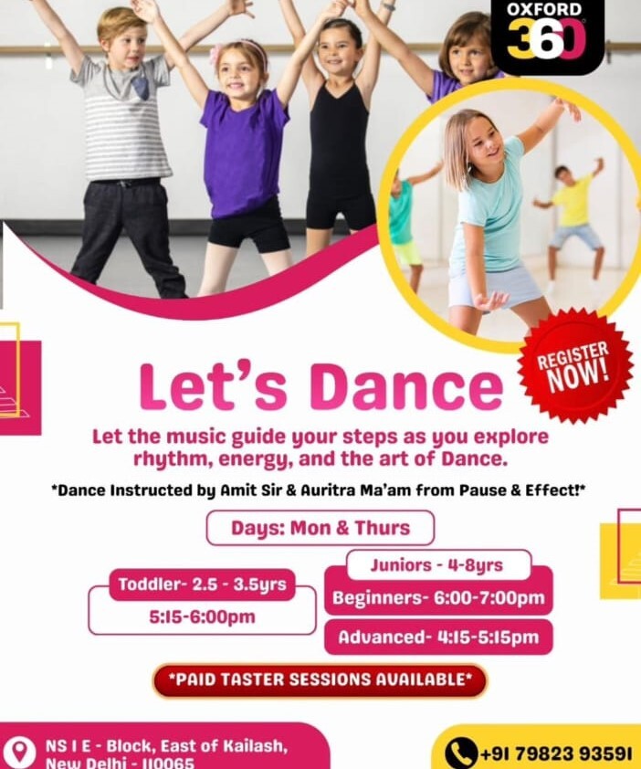 Get ready to move, groove, and have fun with the Dance Program at Oxford 360. Led by Amit Sir and Auritra Ma'am from Pause & Effect, these energetic sessions help children explore rhythm, movement, coordination, and self-expression through dance.