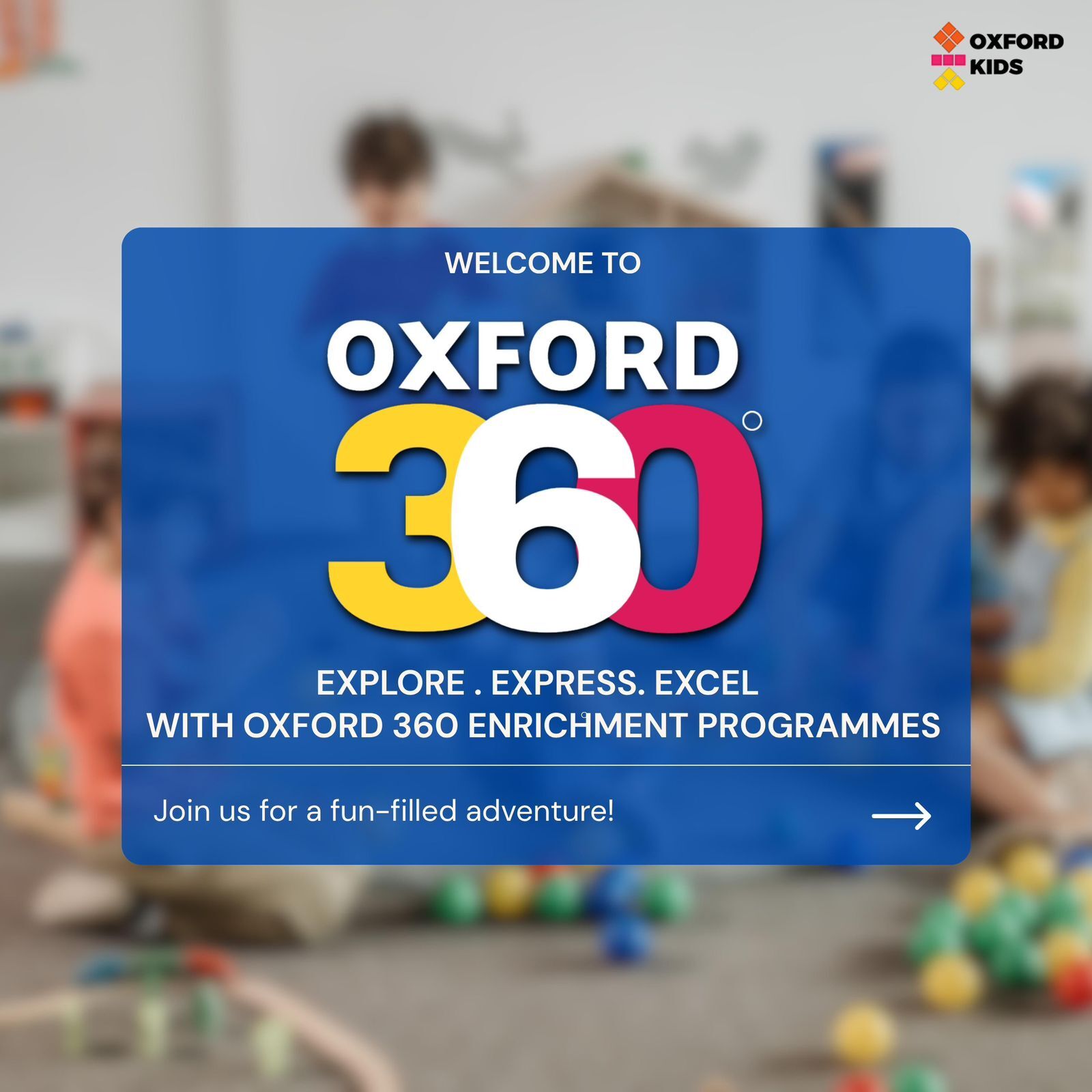 Welcome to Oxford Kids 360° Enrichment Programmes — a unique platform where children can explore, express, and excel through holistic development.The program offers age-appropriate sessions in Sports & Fitness, Drama, Dance, Musical Story Time, Robotics, Swimming, Spanish, and Phonics. With specialized batches every child gets a focused and fun-filled learning experience.
