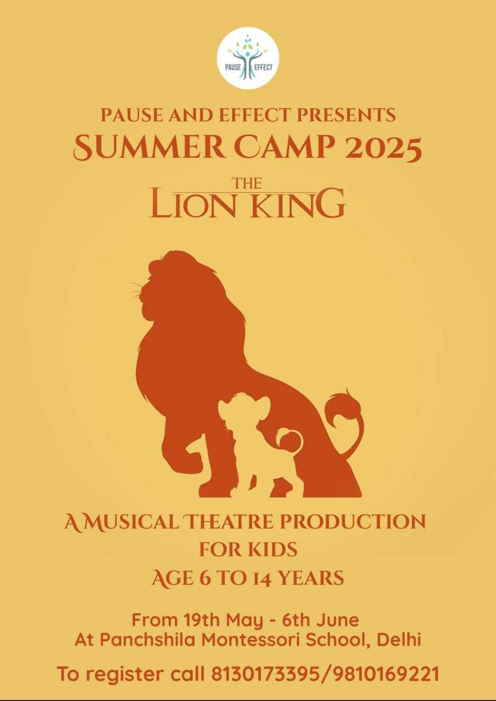 Embark on a captivating journey into the heart of the savanna with Pause and Effect's immersive summer camp! Designed for young enthusiasts aged 6 to 14, this program offers a unique opportunity to delve into the world of musical theatre through the enchanting tale of The Lion King.