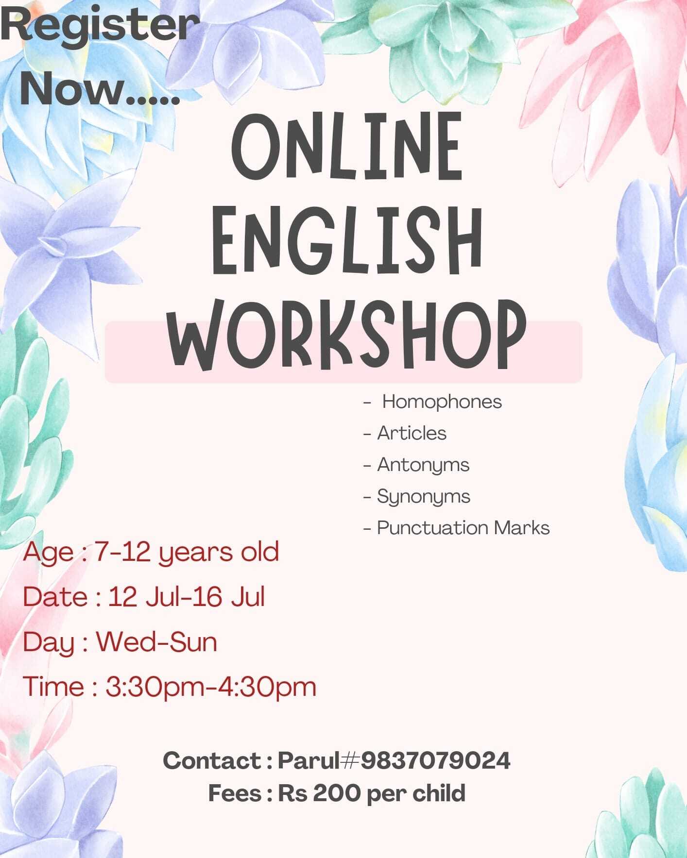 Parul Hosted Online English Workshop For Kids đ Enroll Your Child đ