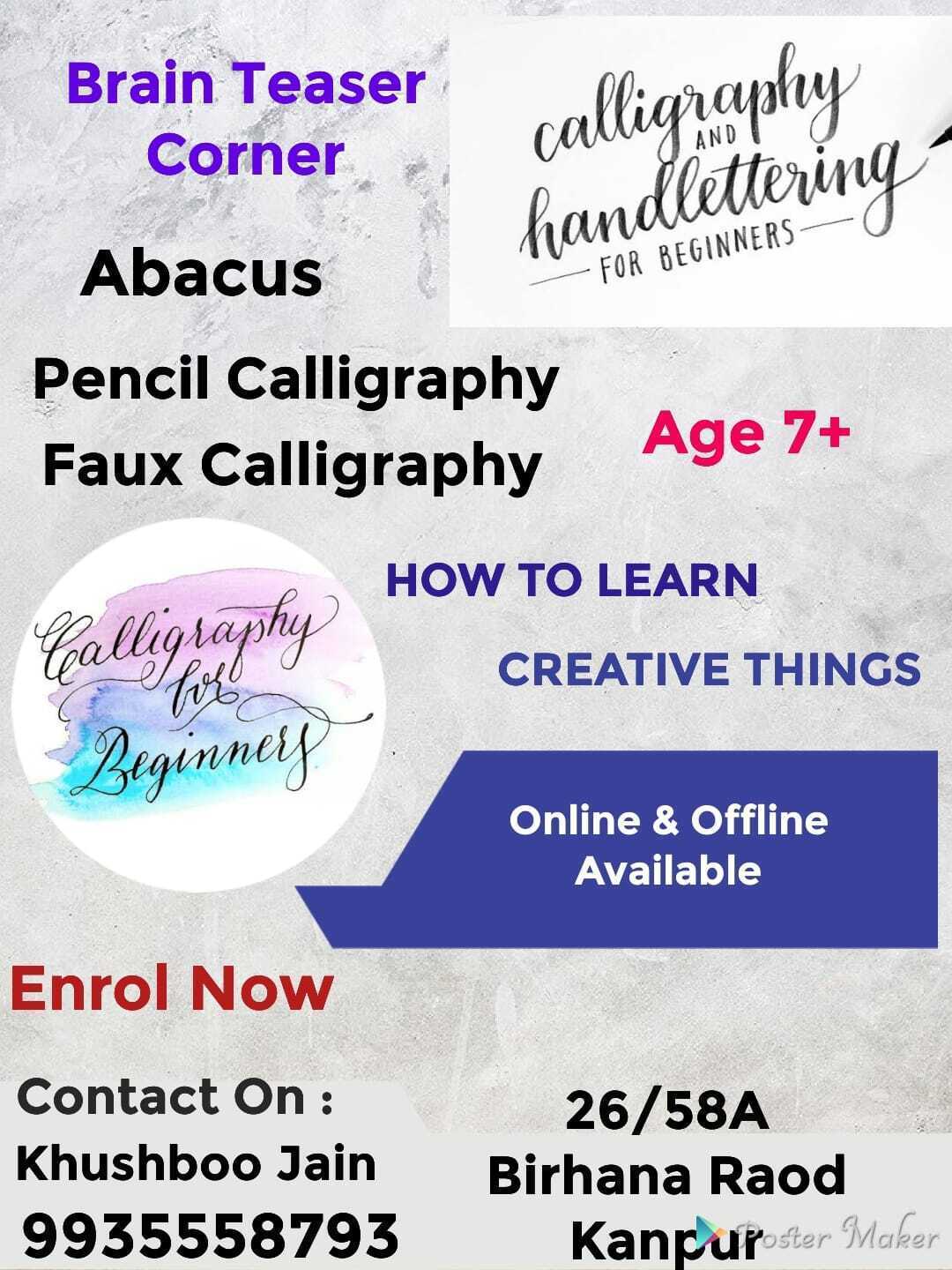 Summary: Join us at the Poster Maker event where your children can explore the artistic techniques of pencil and faux calligraphy. It's a fun brain teaser corner designed to enhance creativity and learning!