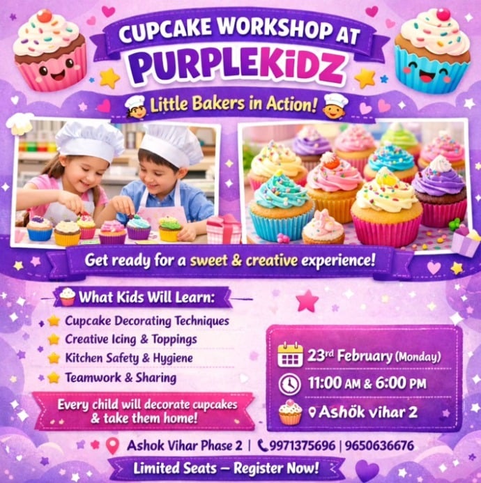 Join us for a delightful and creative Cupcake Workshop at PurpleKidz, where little bakers will have a fun-filled experience in the kitchen!