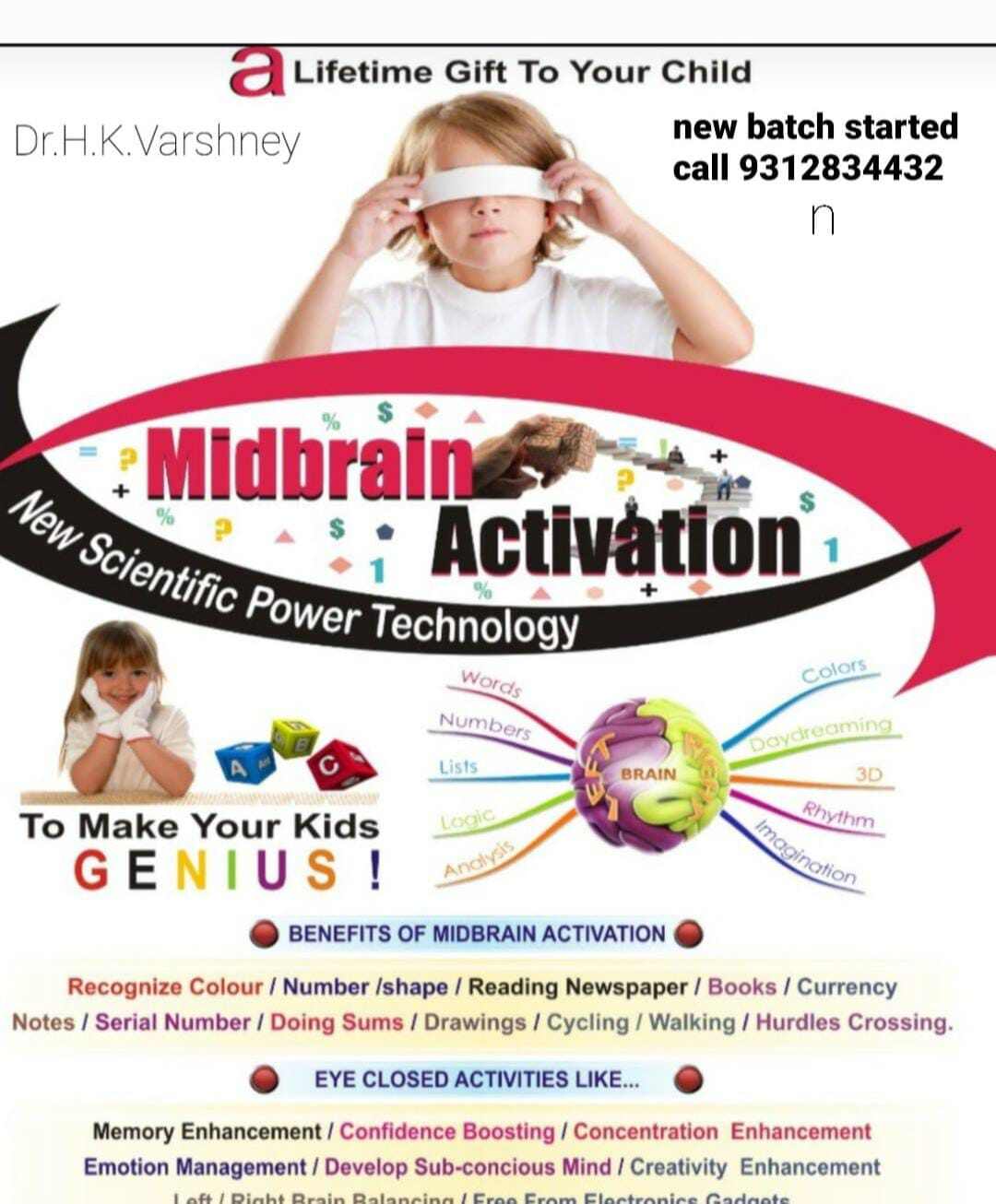 Give your child a lifetime gift with the revolutionary Midbrain Activation Program led by Dr. H.K. Varshney. This cutting-edge scientific technique is designed to awaken your child’s hidden abilities and turn them into a young genius!