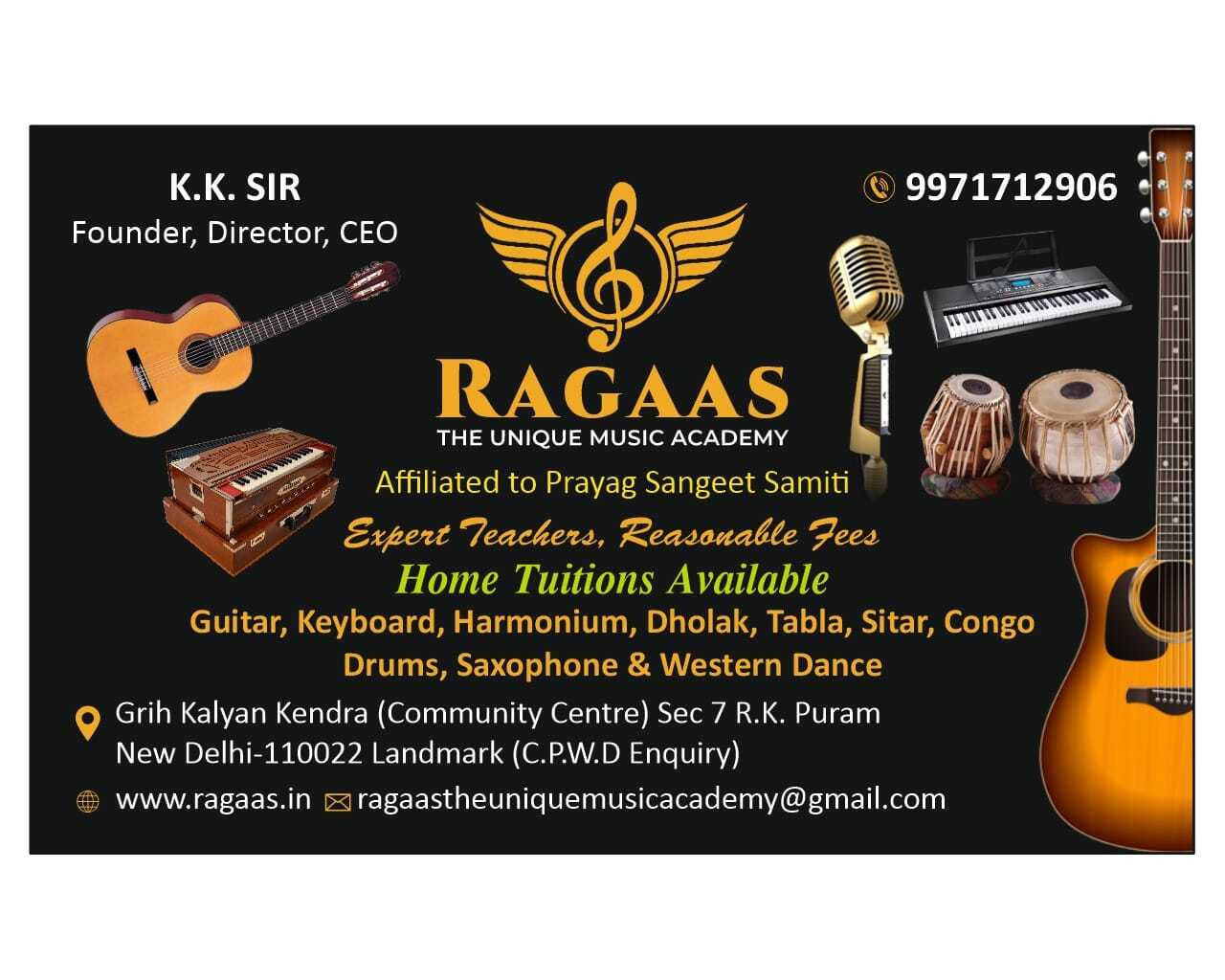 Ragaas The Unique Music Academy, founded by K.K. Sir, is a premier institution dedicated to nurturing musical talent and fostering a love for music. Affiliated with Prayag Sangeet Samiti, our academy offers expert guidance in a wide range of musical instruments and styles.