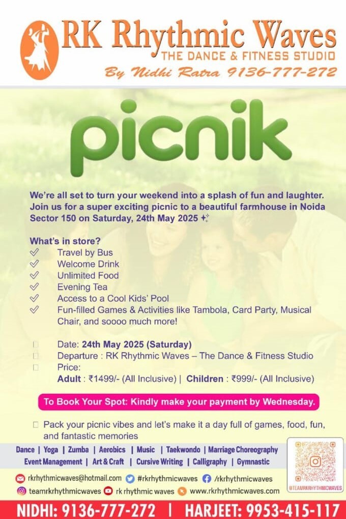 RK Rhythmic Waves invites you to an exciting weekend getaway filled with laughter, games, and unforgettable memories. This one-day picnic is perfect for families and kids looking to enjoy nature, swim in the kids’ pool, and take part in entertaining group games. From food and drinks to fun-packed activities, everything is taken care of—just bring your energy and smiles!