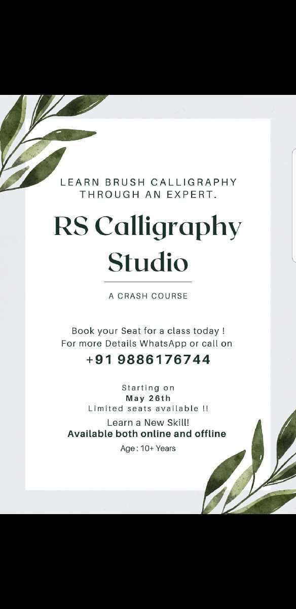 Message: Don't miss out! đ Enroll your child in our brush calligraphy class and watch them master the art of beautiful writing. Let their creativity run wild! đ Sign up now at RS Calligraphy Studio!