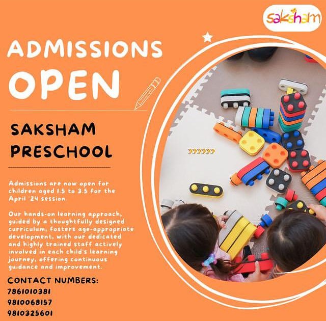 Summary: đšď¸ Saksham Preschool is welcoming new students for the April 2024 session. đšď¸ A wonderful start for your child's education journey!