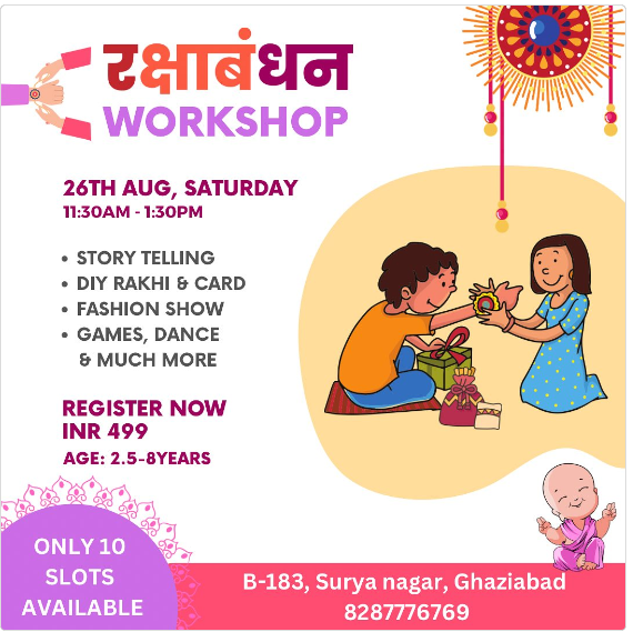 Summary: Join our exciting Raksha Bandhan workshop designed for kids! Filled with activities like storytelling, DIY crafts, fashion shows, games, dance, and much more.