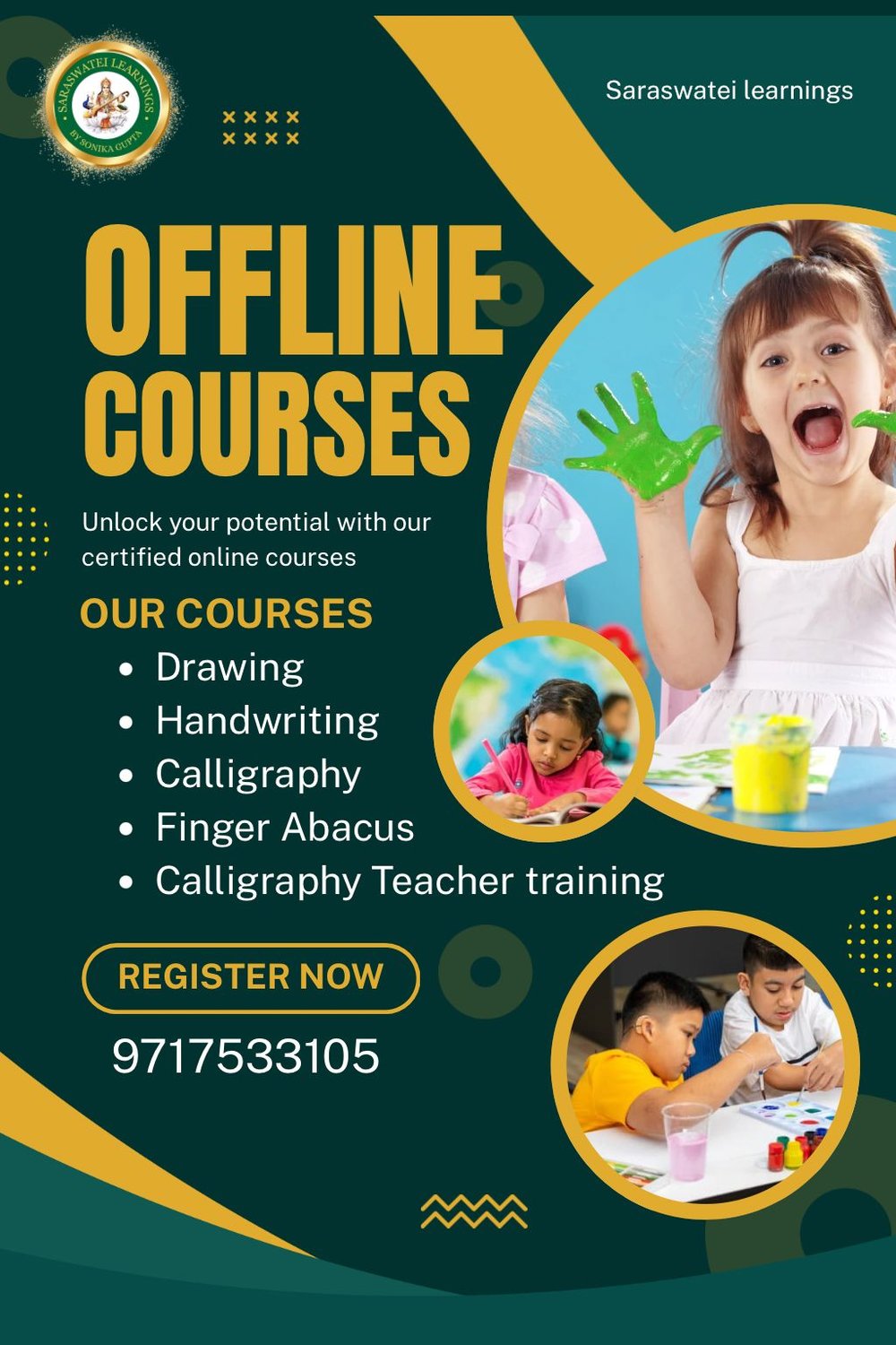 Saraswatei Learnings offers offline and online courses designed to build creativity, enhance skills, and boost confidence in children. From improving handwriting to exploring drawing, mastering calligraphy, and strengthening mental math with finger abacus, they also offer teacher training in calligraphy for those interested in advancing their skills professionally.