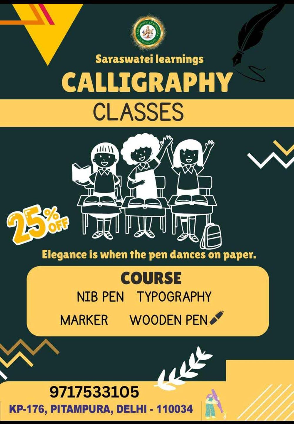 Unleash the art of beautiful writing with our engaging Calligraphy Course designed for all skill levels. Learn the elegance of pen strokes and typography styles using various tools like nib pens, markers, and wooden pens.