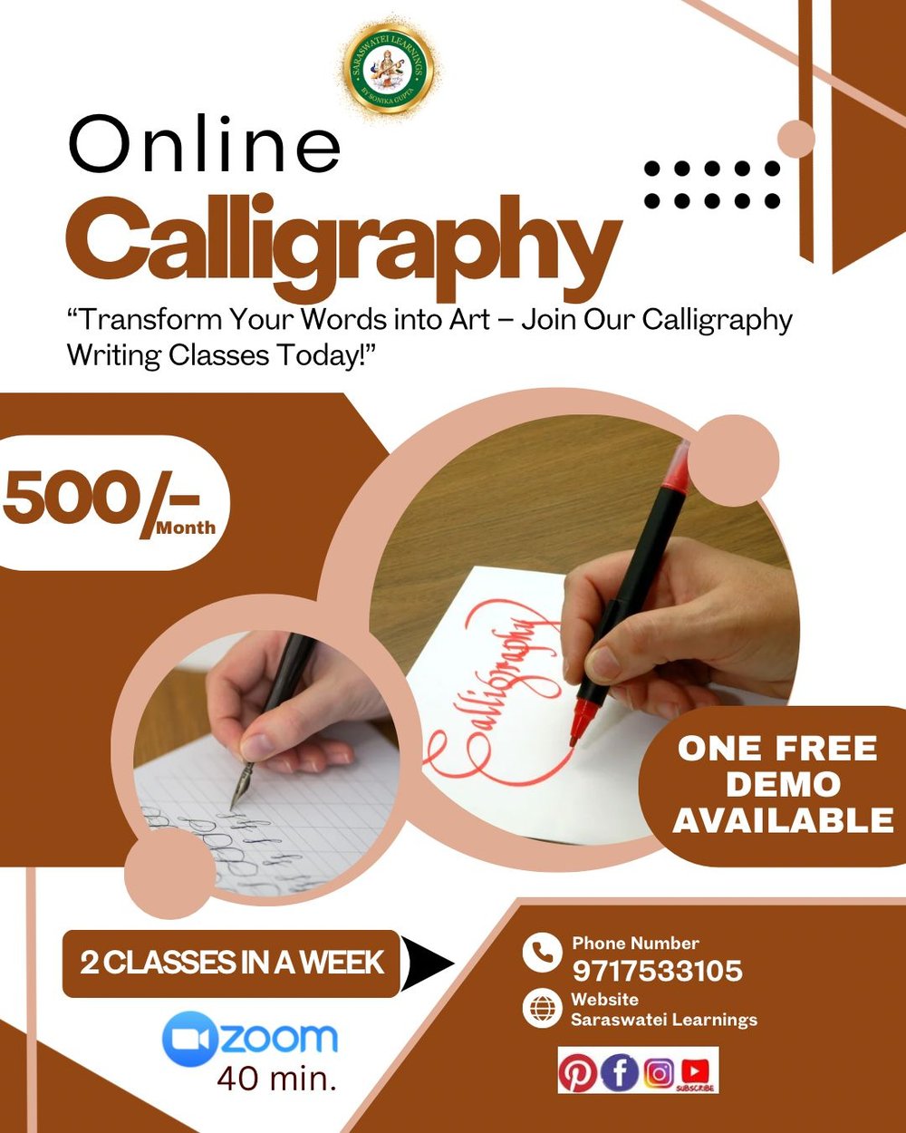 đď¸ Online CALLIGRAPHY CLASSES – 1 FREE DEMO! đď¸