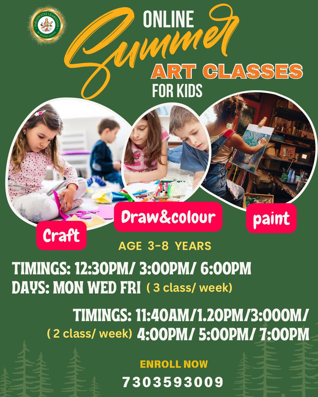 Let your child’s imagination come to life this summer! Join our fun and creative online art classes designed specifically for kids.From painting and crafting to drawing and coloring, these interactive sessions help children explore their artistic talents, build confidence, and have a blast — All from the comfort of home!