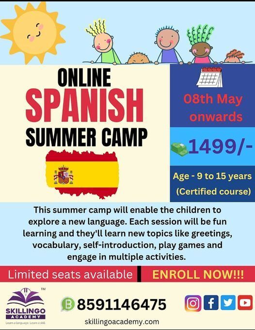 đ Message: Join our exciting online Spanish camp for kids at Skillingo Academy! Perfect for a fun and educational summer. Enroll now and let the adventure begin! đâ¨