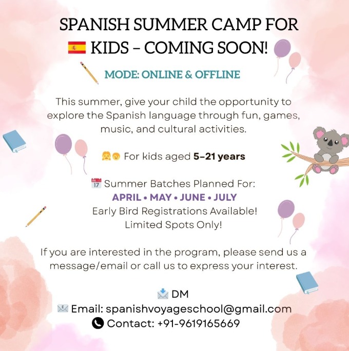 Designed for children aged 5 to 21 years, this camp offers a unique opportunity to learn Spanish through interactive and fun activities such as games, music, and cultural experiences. With 17 summer batches planned across April, May, June, and July.