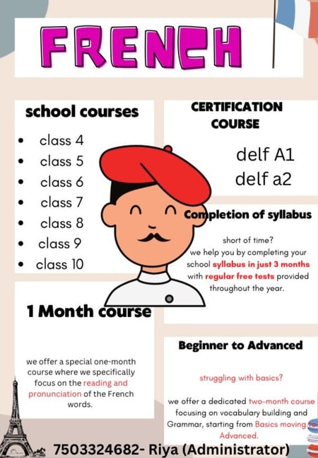 Summary: Enrich your child's French language skills through our targeted courses, ranging from beginner to advanced levels, alongside certification courses like delf A1 and A2