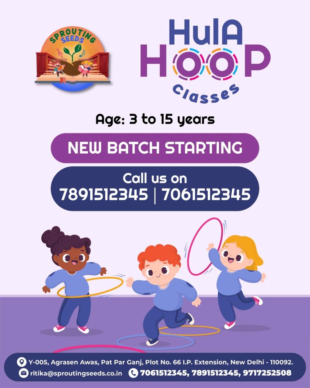 Sprouting Seeds introduces Hula Hoop Classes designed for children . These sessions combine fun and fitness, helping children improve coordination, flexibility, and balance while enjoying a lively and engaging activity. Hula hooping promotes physical wellness, rhythm, and confidence, making it a joyful way to stay active and creative.