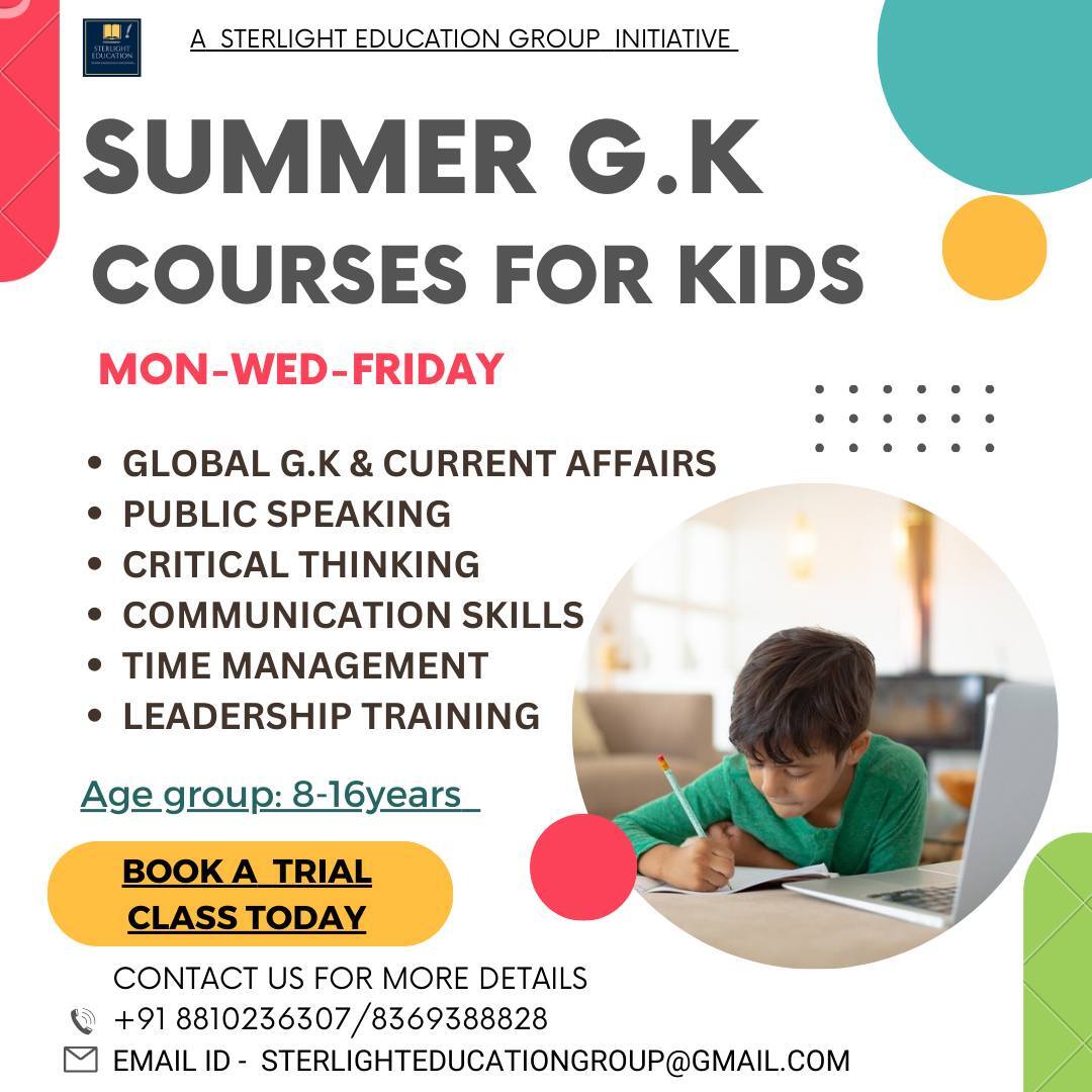 Unlock your child's potential this summer with our specially designed Summer GK Courses, held every Monday, Wednesday, and Friday.