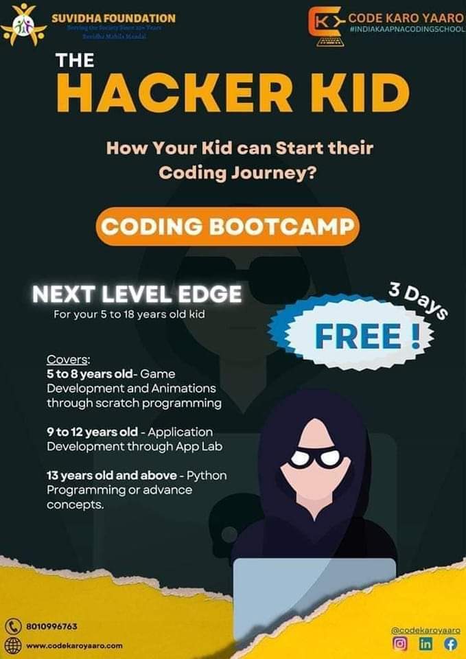 Suvidha Foundation hosted the Hacker Kid Program, a coding Bootcamp designed for kids! đđ§đŚ