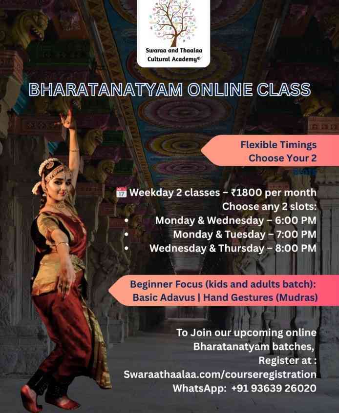 Begin your classical dance journey with Swaraa and Thaalaa Cultural Academy Bharatanatyam Online Classes!