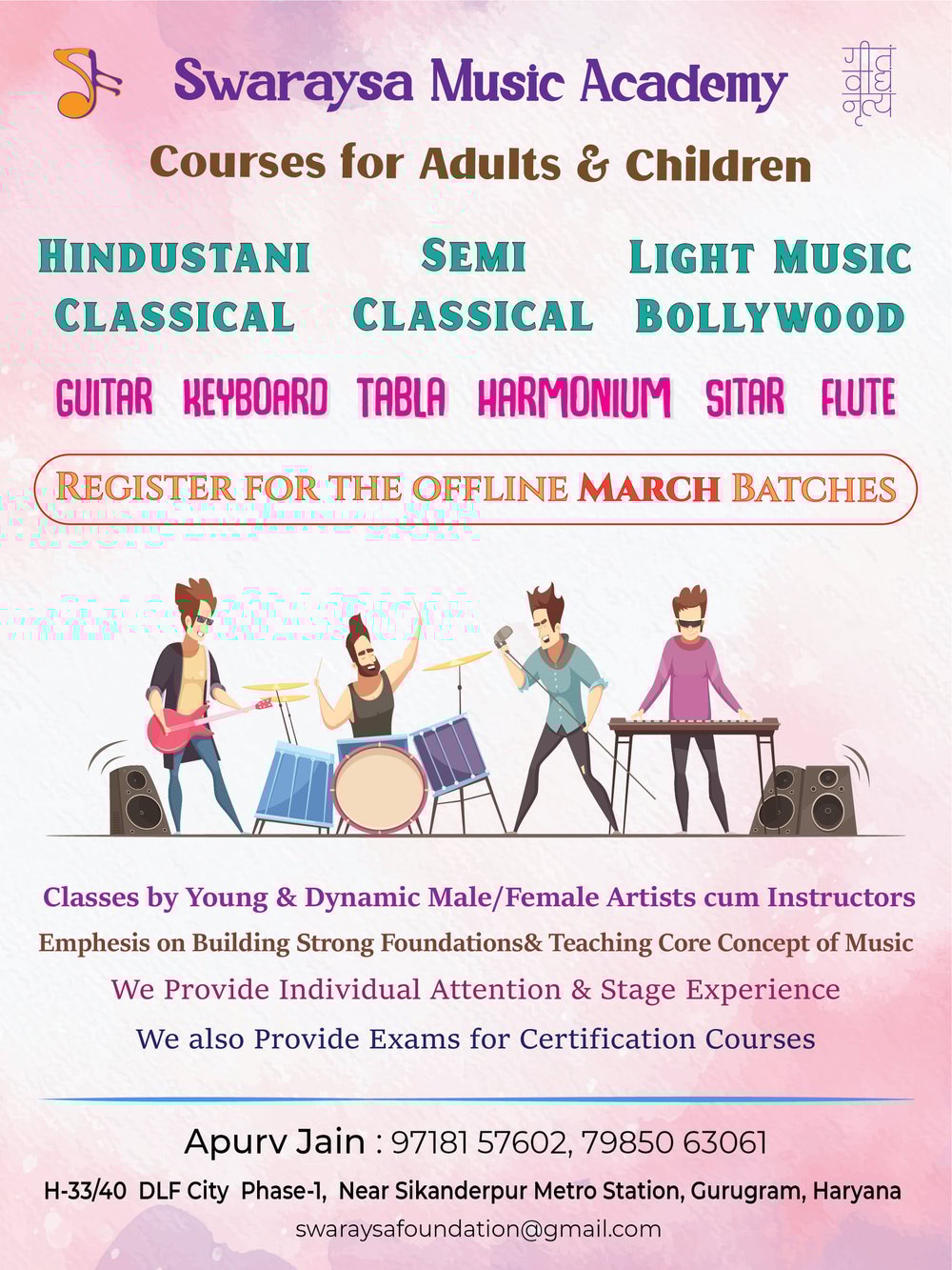 Swaraysa Music Academy Hosted Courses for Adults & Children Enroll Now đ Highlightsđ