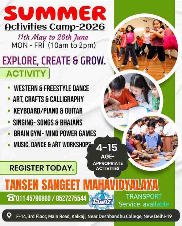 Give your child a summer full of creativity, learning, and joyful experiences at Tansen Sangeet Mahavidyalaya Summer Activities Camp 2026.