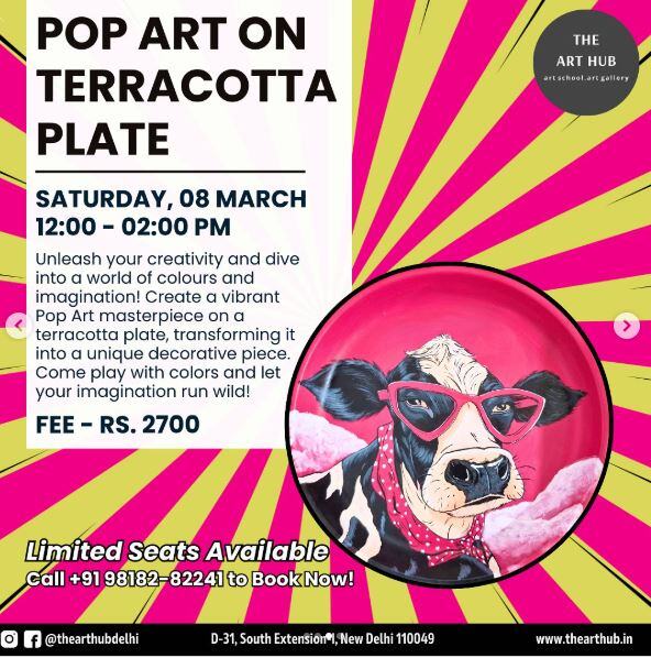 Unleash your creativity and dive into a world of colours and imagination! Create a vibrant Pop Art masterpiece on a terracotta plate, transforming it into a unique decorative piece. Come play with colors and let your imagination run wild.