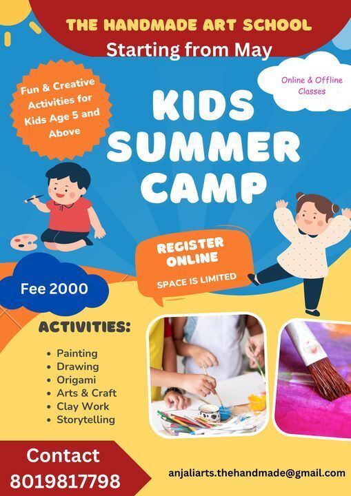 đ¨ The Handmade Art School Hosted Summer Camp for kids (online / offline classes) đď¸ Activities:- đď¸ Drawing đ¨ Painting đ Origami đ ď¸ Art & Craft