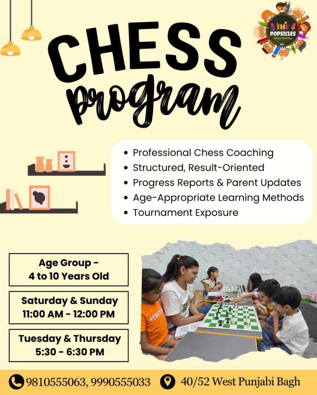 This structured and result-oriented chess coaching program is designed for children . With age-appropriate teaching methods, regular progress reports, and parent updates, the program ensures steady development in gameplay and strategic thinking. Children also gain tournament exposure to build confidence and real-game experience. Sessions are held every weekend and on selected weekdays to suit different schedules.