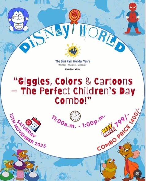 Join us for a delightful Children’s Day celebration at The Shri Ram Wonder Years in Paschim Vihar! Experience a magical day filled with giggles, vibrant colors, and favorite cartoons, the perfect combo to make this Children’s Day truly special!