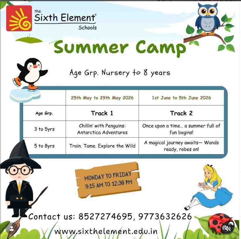 Give your child a summer filled with imagination, discovery, and unforgettable experiences at The Sixth Element Schools Summer Camp 2026! Specially designed for Nursery to 8 years, this exciting camp offers age-specific themed tracks that combine storytelling, adventure, creativity, and playful learning in a fun and engaging environment.