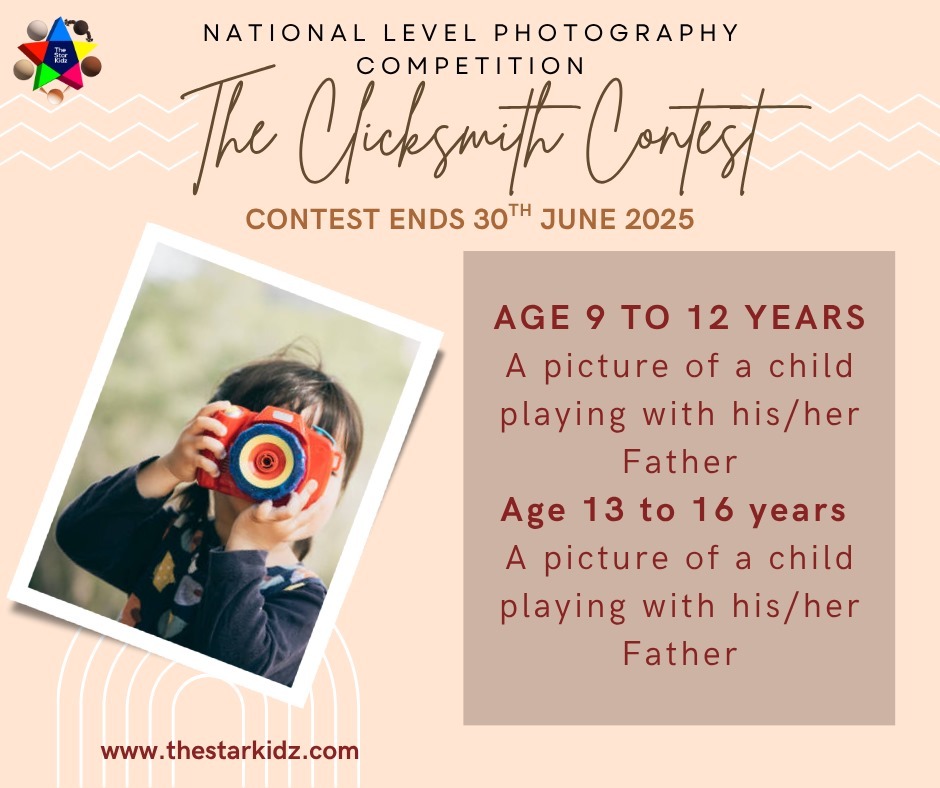 Showcase your creativity in the National Level Photography Competition – The Clicksmith Contest.This competition invites young photographers to capture heartfelt moments of a child playing with their father. Celebrate the bond and express your unique perspective through your lens.