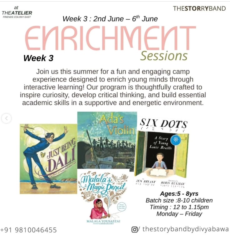 Join us for an engaging week of Enrichment Sessions designed to ignite young minds through meaningful stories and interactive learning. With a thoughtfully curated selection of books including Ada’s Six Dots, The Story of Young Louis Braille, Malala’s Magic Pencil, and more, children will explore themes of resilience, creativity, and innovation. Activities are crafted to strengthen comprehension, foster curiosity, and build confidence—all in a warm, collaborative space.