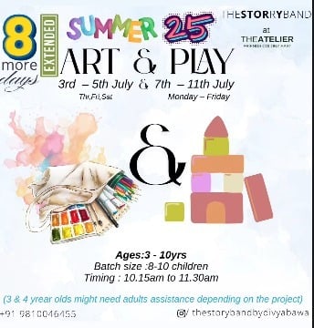 The Storry Band Summer 2025 – Art & Play sessions are back with extended dates for kids. This interactive and engaging workshop offers a blend of imaginative art projects and playful learning experiences. Scheduled in two segments—the sessions will run in small, focused batches of 8 to 10 children. Activities are age-appropriate, with younger participants possibly needing adult assistance, depending on the project. Perfect for a creative summer break filled with hands-on fun and artistic exploration.