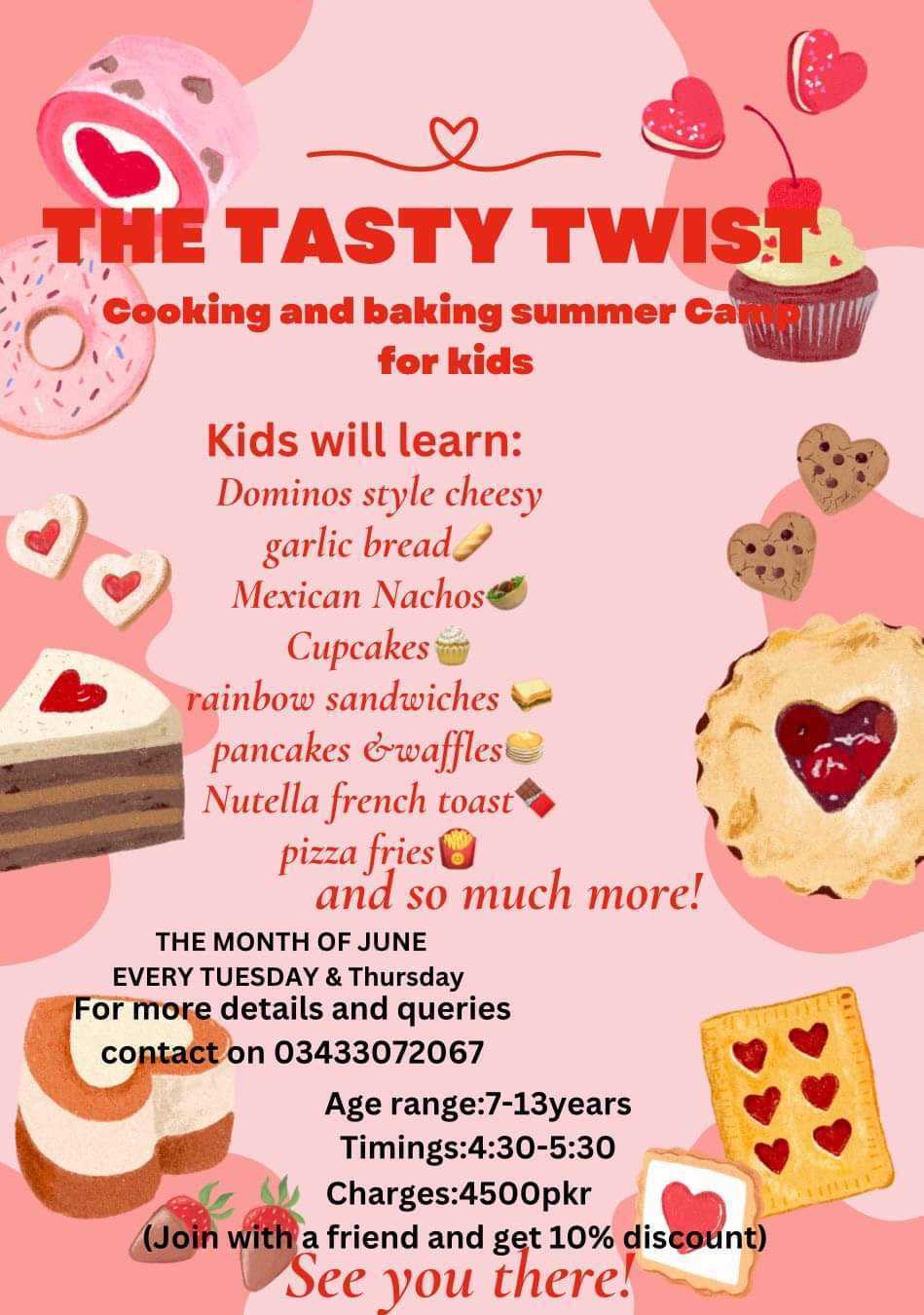 Message: Don't miss out! Sign your child up today for The Tasty Twist Cooking and Baking Camp đ and watch them become kitchen superstars! đ