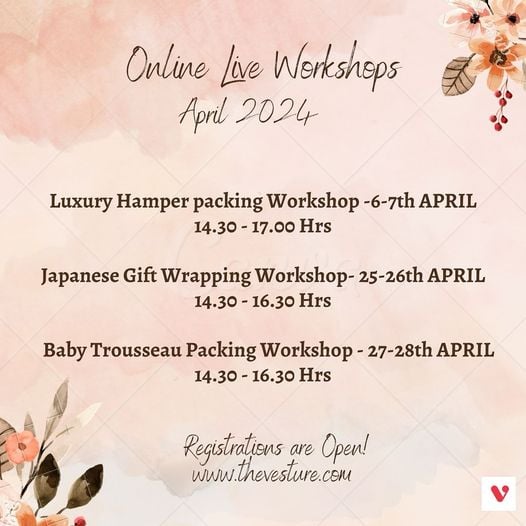 đš Attend specialized art and craft workshops including luxury hamper packing, Japanese gift wrapping, and baby trousseau packing.