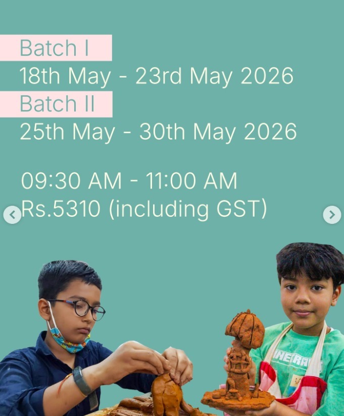 Let young minds explore the world of art and imagination through the Children’s Clay Modelling Summer Workshop at Triveni Kala Sangam.