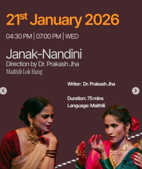 Join us for an enriching theatrical experience at the Triveni Theatre Festival 2026 with the play "Janak-Nandini" by Maithili Lok Rang.