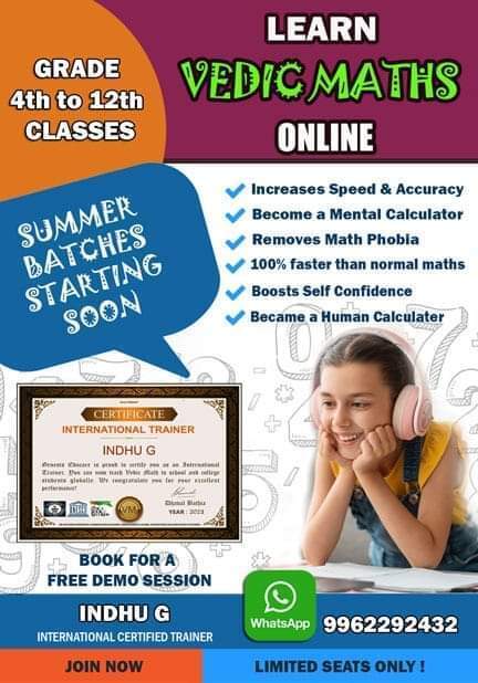 Message: Don't miss out on becoming a math whiz! đ Enroll in our Vedic Maths Summer Camp today and transform your mathematical skills! đđĄ