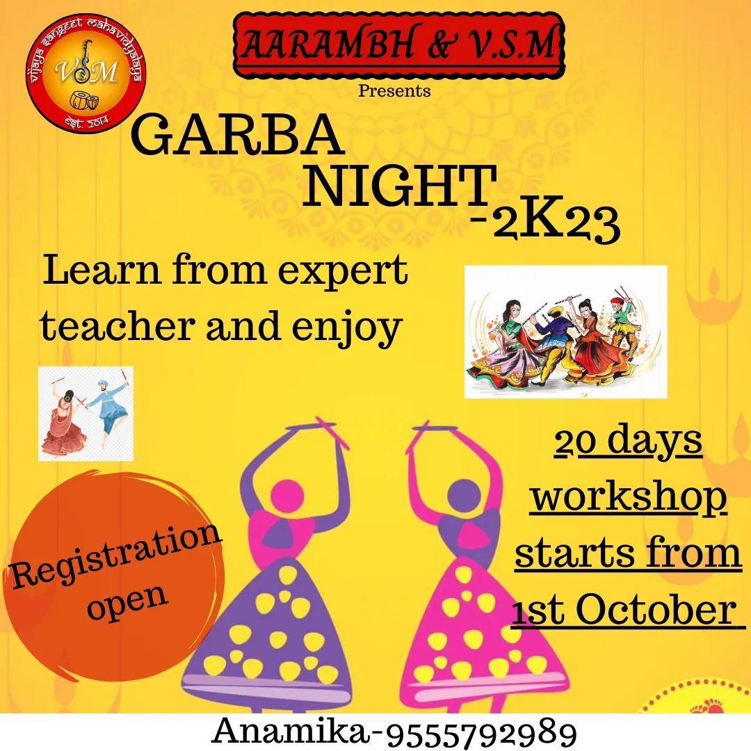Summary: Join us at Vijaya Sangeet Mahavidyalaya for an exciting 20-day Garba Night workshop where you can learn from experienced teachers and enjoy a festive atmosphere! đđşđ