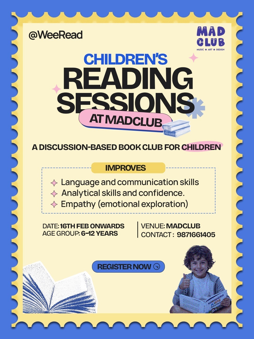 Join Mad Club at WeeRead for an exciting children’s reading session designed to inspire and educate young minds! Starting from 16th February, our discussion-based book club is tailored for children aged 6 to 12 years.