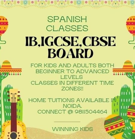 đ Enroll in Winning Kids Spanish classes available for both kids and adults! From beginner to advanced levels, these classes accommodate various board syllabi including IB, IGCSE, and CBSE, and are scheduled across different time zones. Now also offering home tuitions in Noida.