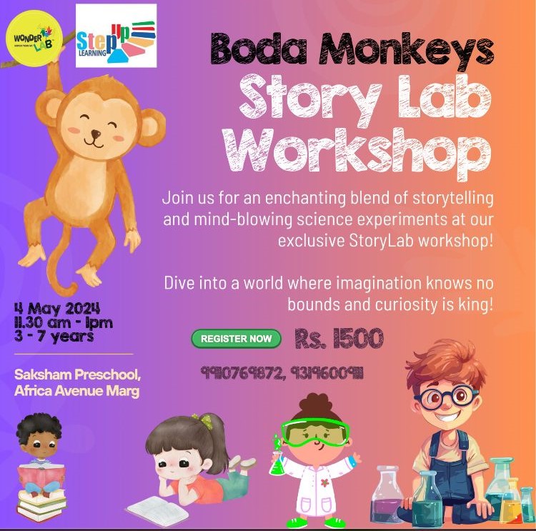 Don't miss out! đ Enroll your child in the Boda Monkeys Story Lab Workshop today and watch them explore the wonders of both stories and science! â¨đĄđ