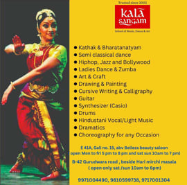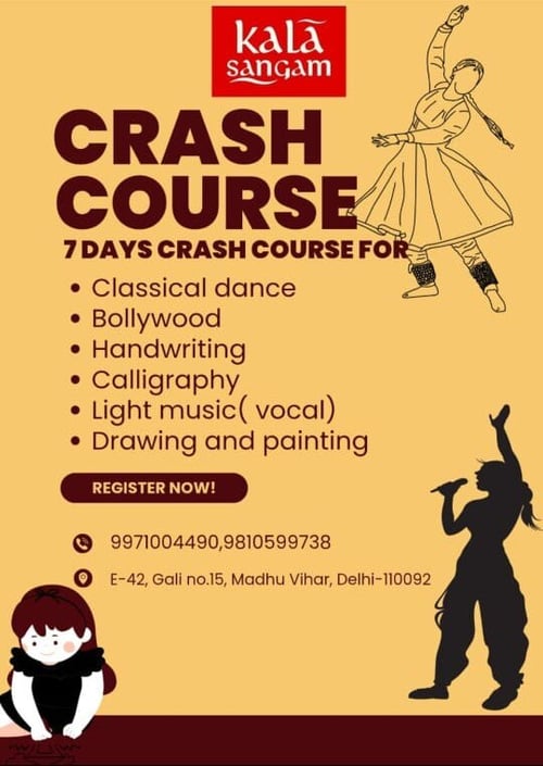 With a focus on Summer Camp, Art and Craft, Dance and Music, Drawing, Painting, Sketching, Zumba, Bhangra, Guitar, Sports and Fitness, Yoga, Reading Writing, Tuition Classes, Phonics, Kathak, Workshops, Vocal, Handwriting, Calligraphy, Bollywood Dance, Drama Theatre, Bharatnatyam, Creative Writing, Casio, Harmonium, Hip Hop, Jazz, Drums, Tabla, Salsa, Languages, Story Telling, Public Speaking and a nurturing environment, Kala Sangam has become a go-to choice for parents in Madhu Vihar looking for meaningful, fun, and skill-building after-school options.